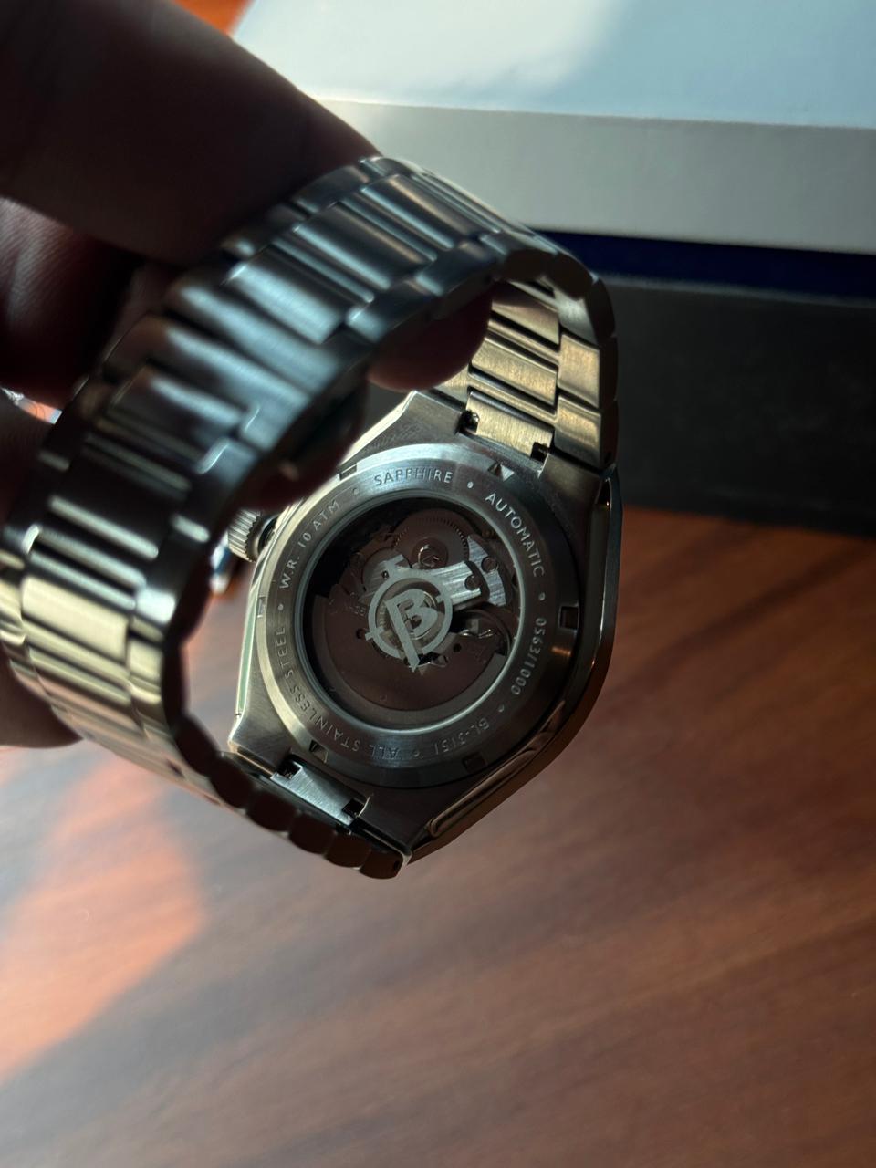 Introducing the Ballast Light Khakhi BL‑3151‑33 - a refined automatic watch that fuses rugged build with striking style. Its 42 mm stainless‑steel case embraces a dependable Japanese automatic movement and bold khaki dial, while the 316L marine‑grade finish and 100 m water resistance ensure it’s built for wear and real‑life conditions. The solid bracelet and mechanical details like exhibition back add value and presence. Grab it in an excellent condition, and with complete box & papers.