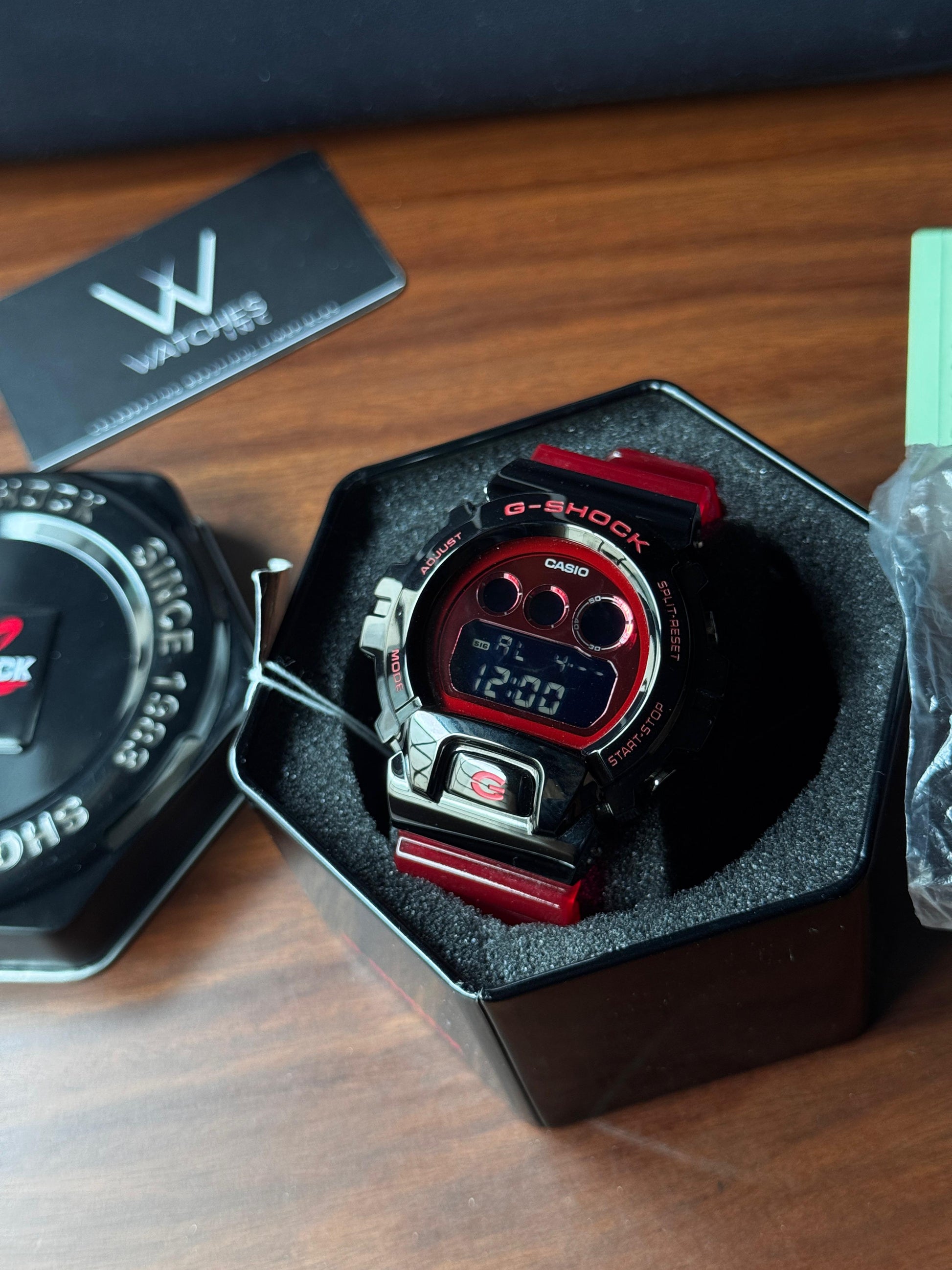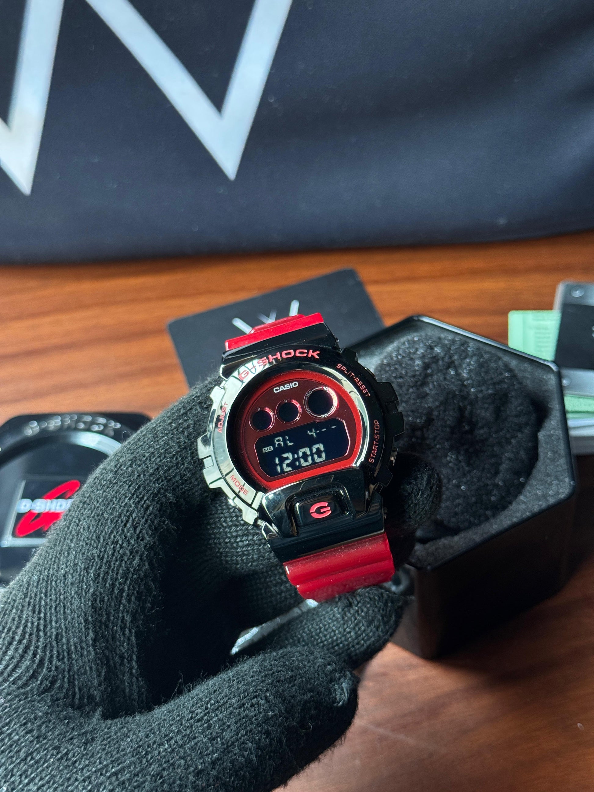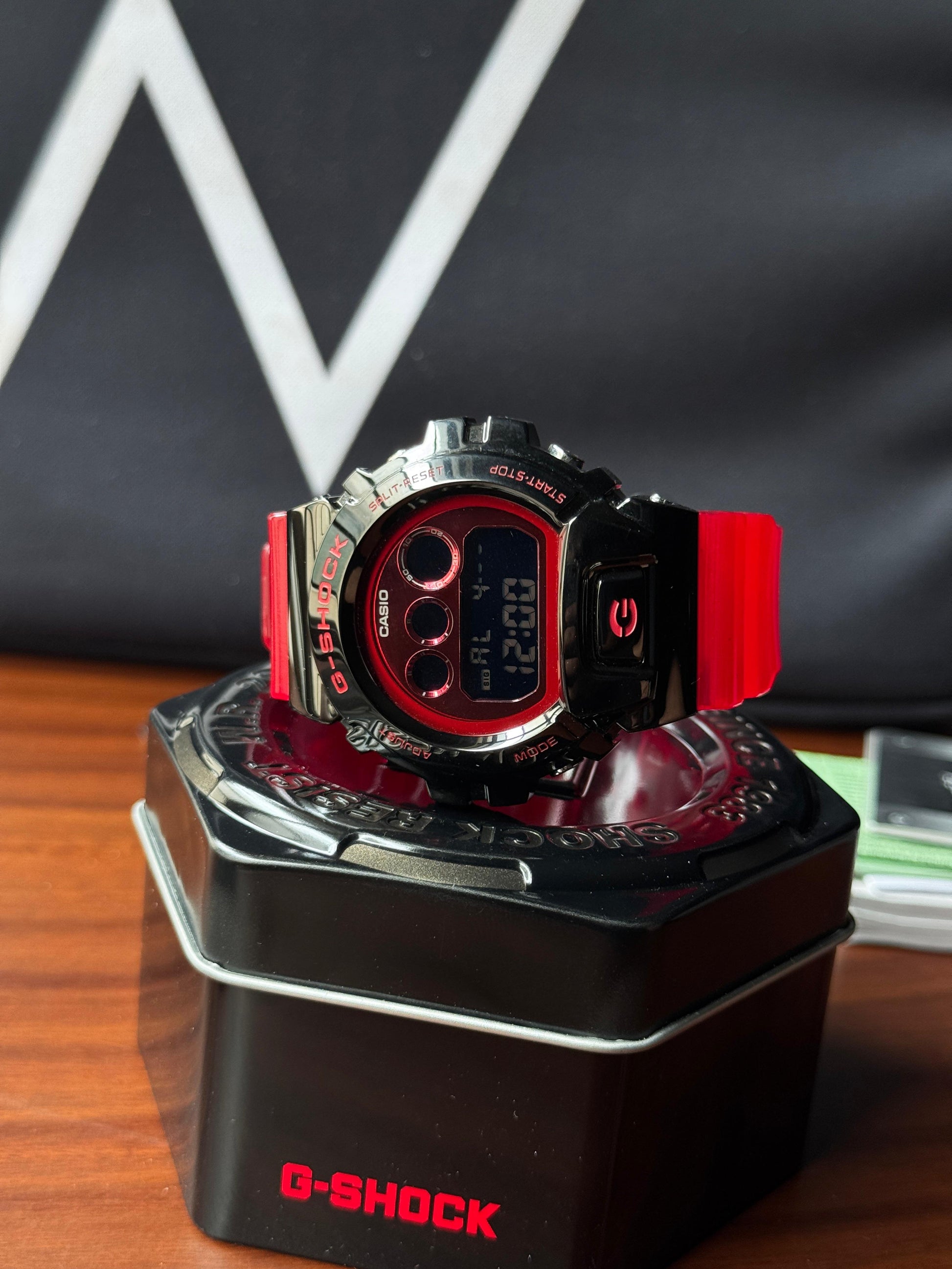 Stylish, rugged, and unapologetically bold - the Casio G‑Shock GM‑6900B‑4DR elevates the classic DW‑6900 with a gleaming steel bezel overlay, vivid red resin strap, and mirrored digital display. Built tough with 200 m water resistance, shock protection, and essential functions like stopwatch, countdown timer, alarms, and backlighting. This brand new JDM version comes with complete box and papers.