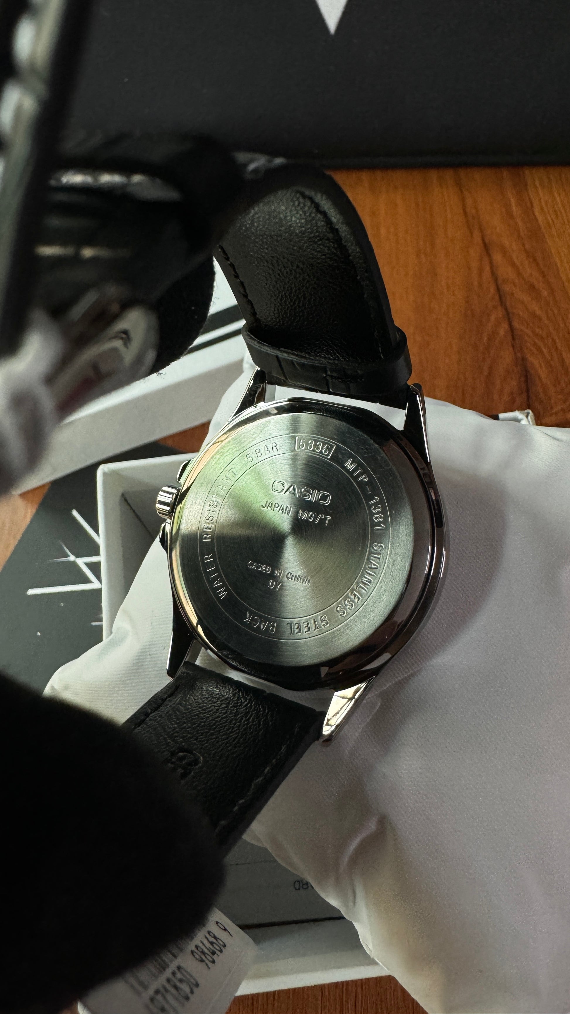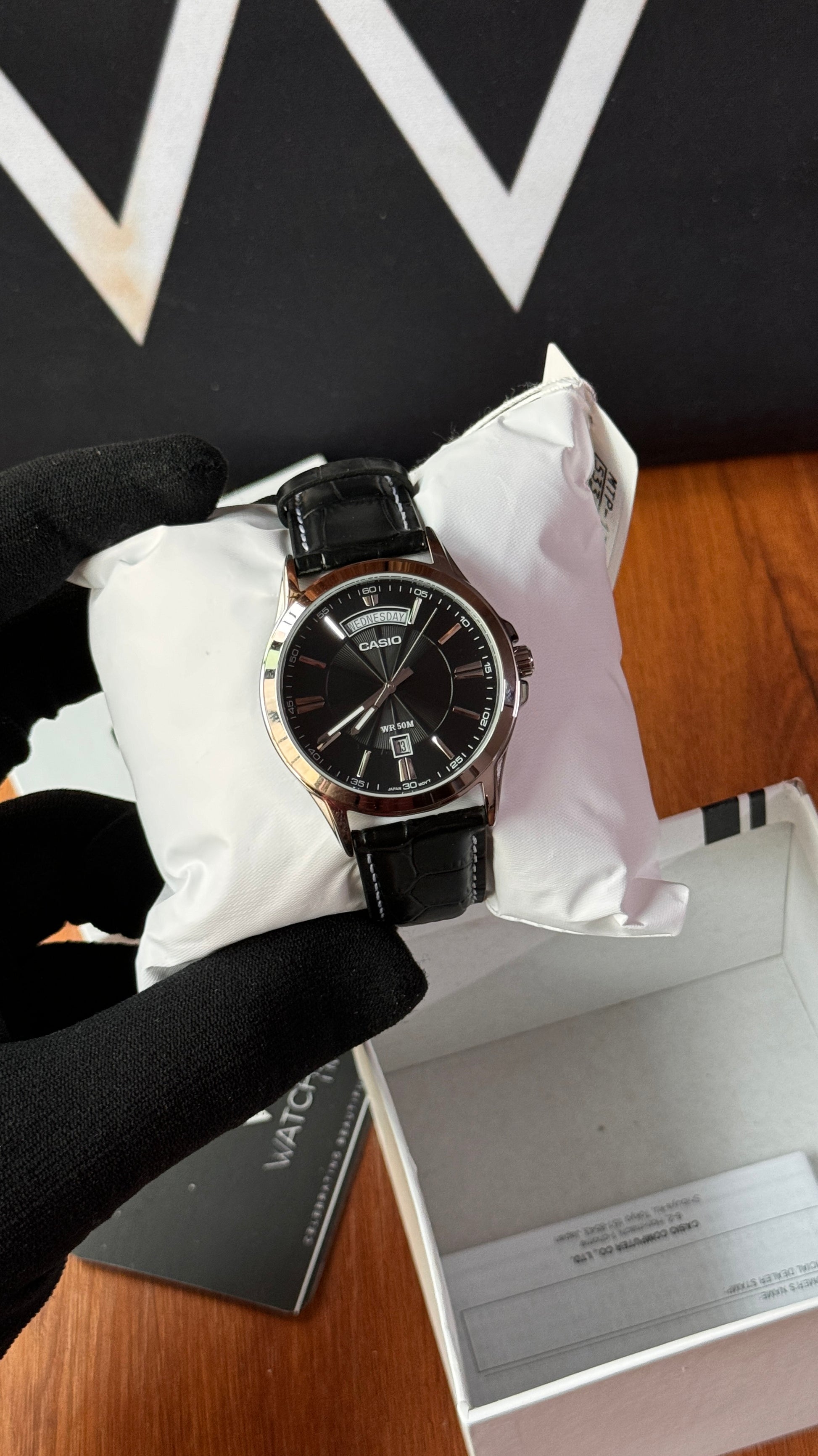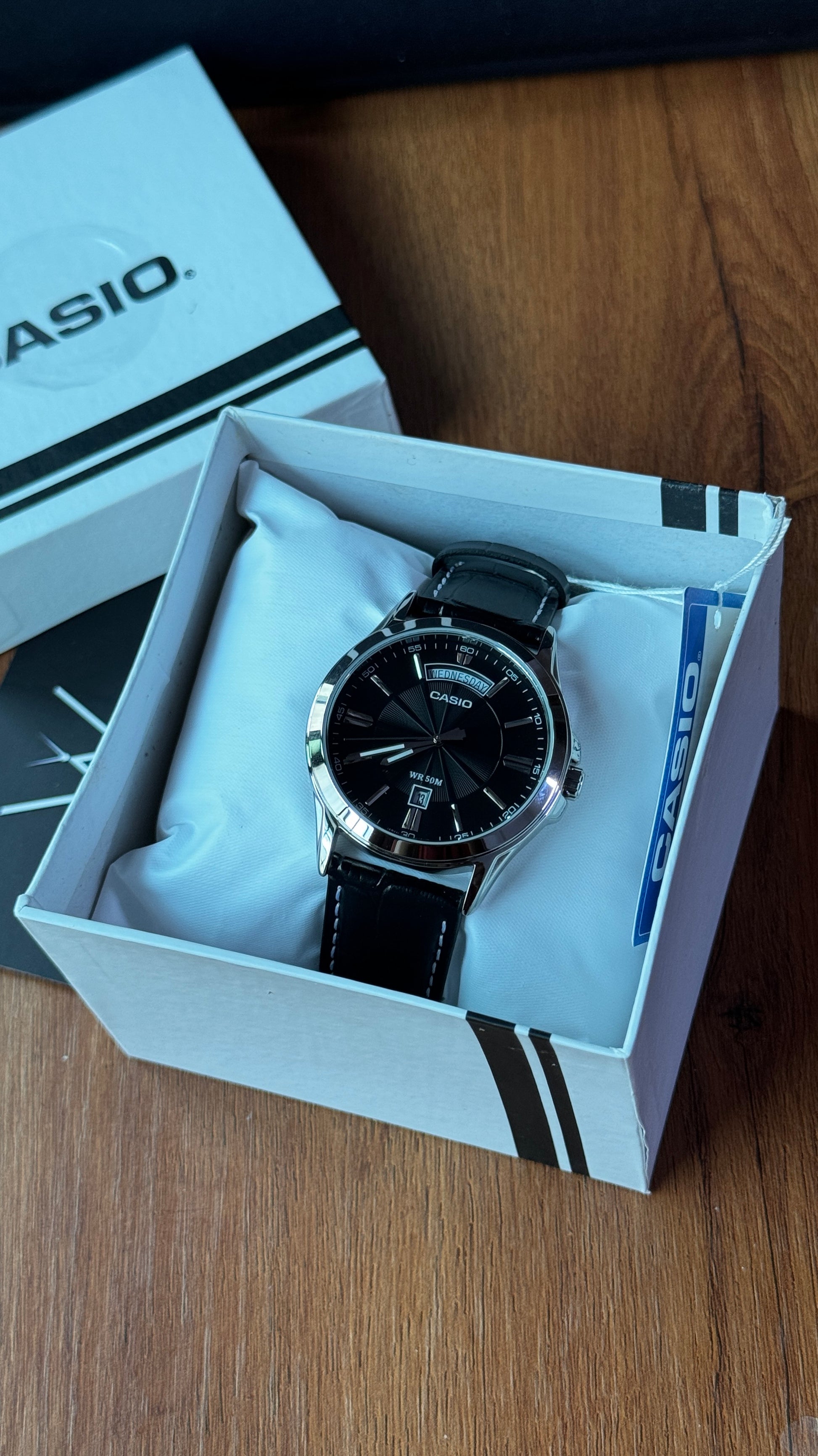 This basic Casio is easy on the wallet and classy on the wrist. A day date feature that is rarely seen done so well in the watch world. A sleek 39mm case, and a beautiful black strap. The watch is brand new with box & papers.