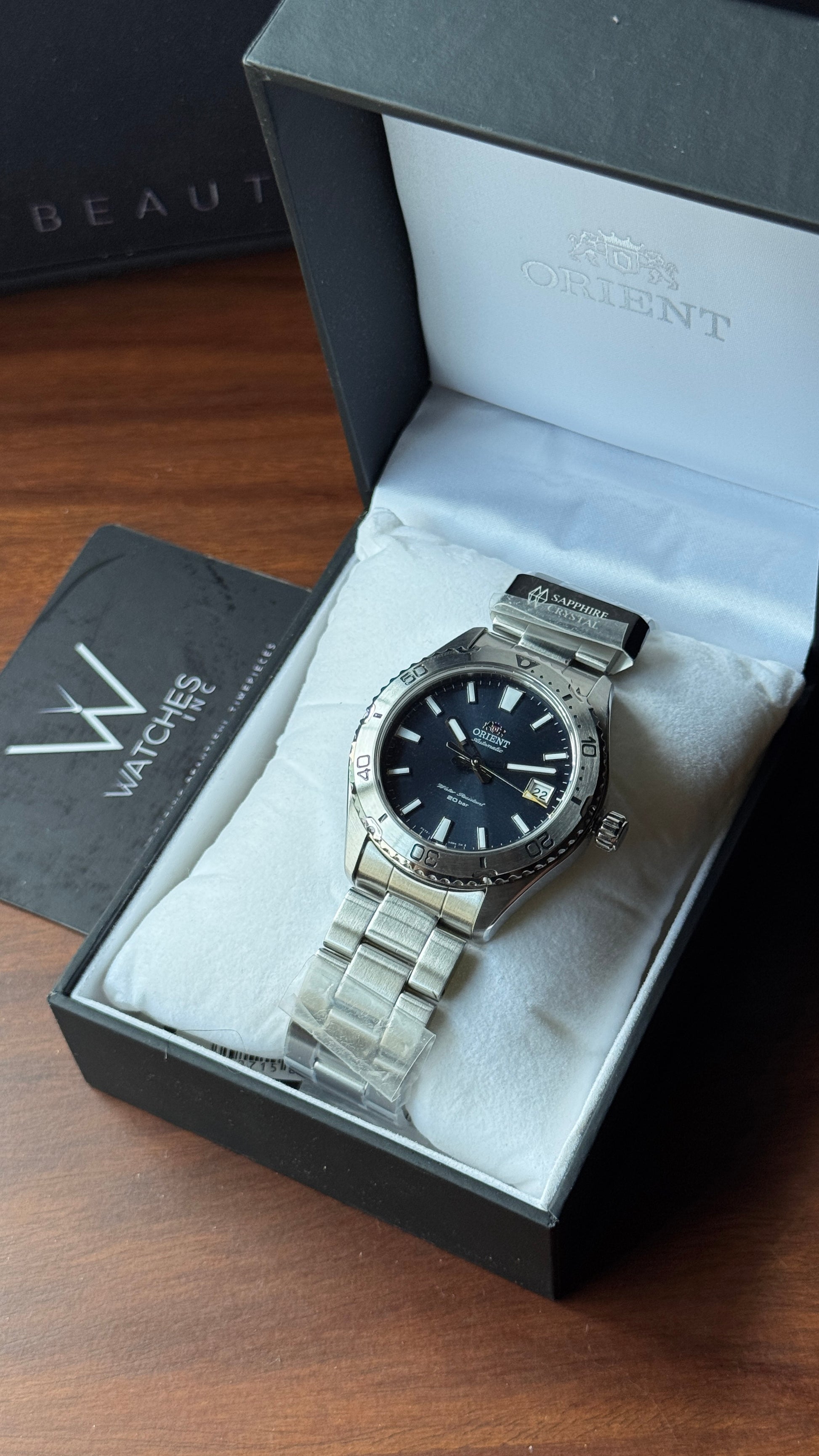 Blending timeless elegance with Japanese reliability, the Orient RA‑AC0Q02L is a versatile dress watch designed for everyday sophistication. With its refined blue sunburst dial and automatic movement, it’s a perfect balance of form and function.