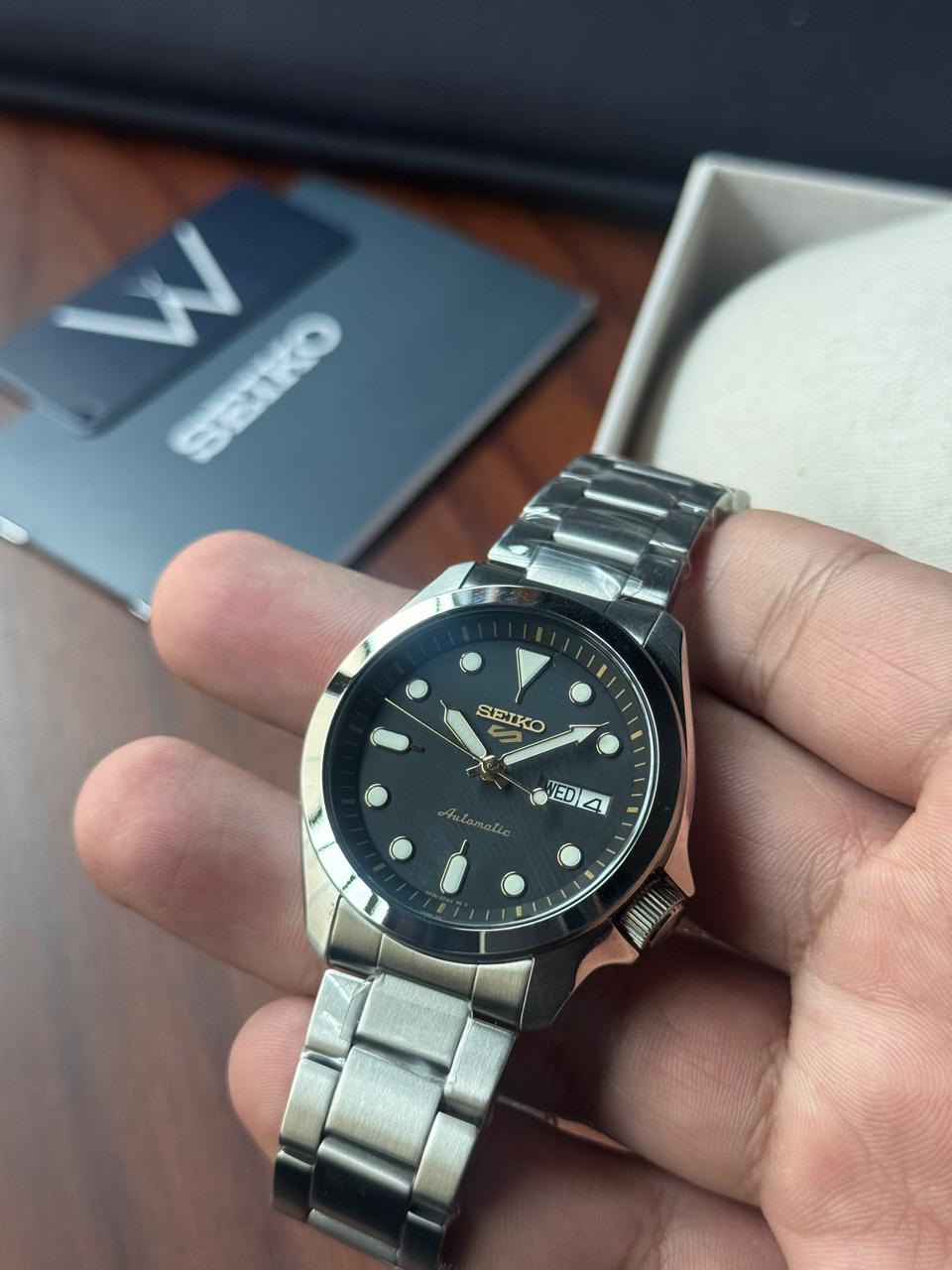 The Seiko 5 Sports SRPE57 is a clean and versatile automatic watch with a balanced 40mm case that works well for daily wear. Known for its simple dial layout and solid build, this model offers reliability and comfort without being bulky. This piece is brand new and currently in stock, offered at a very competitive price with limited availability.